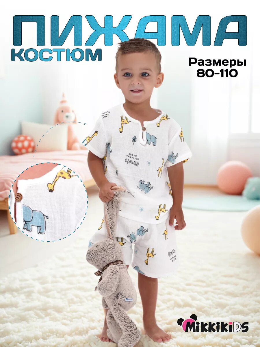 Пижама MikkiKiDS, размер 80, белый с принтом
