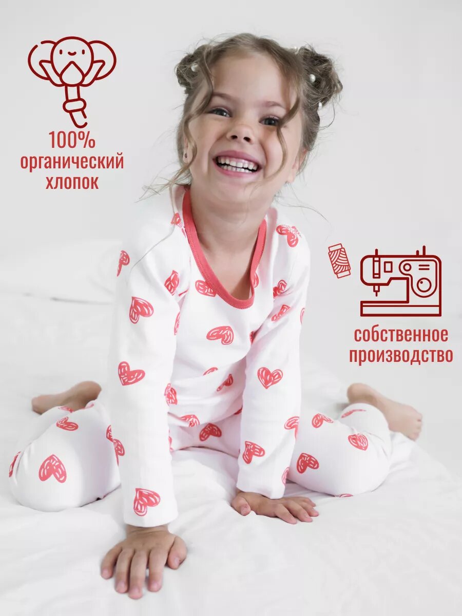 Пижама Happyfox Для девочек, размер 104, сердечки на розовом