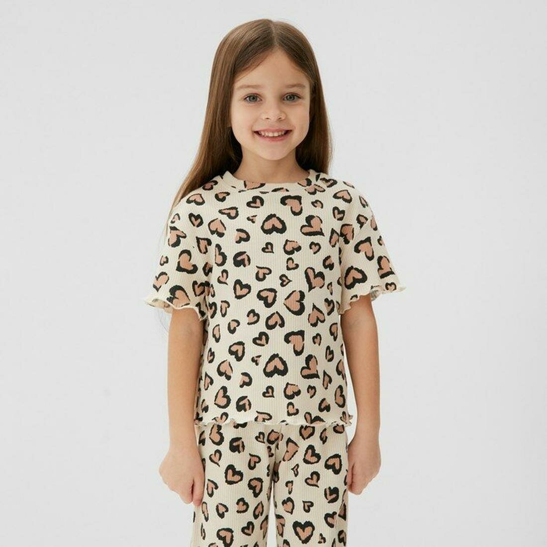 Пижама Happyfox Для девочек, размер 104, сердечки на розовом