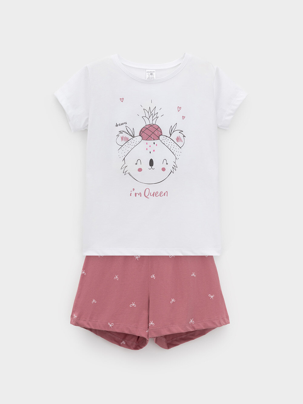 Купить Пижама crockid КП 1648/белый,темная пудра,бантики, размер 60/116, белый, розовый