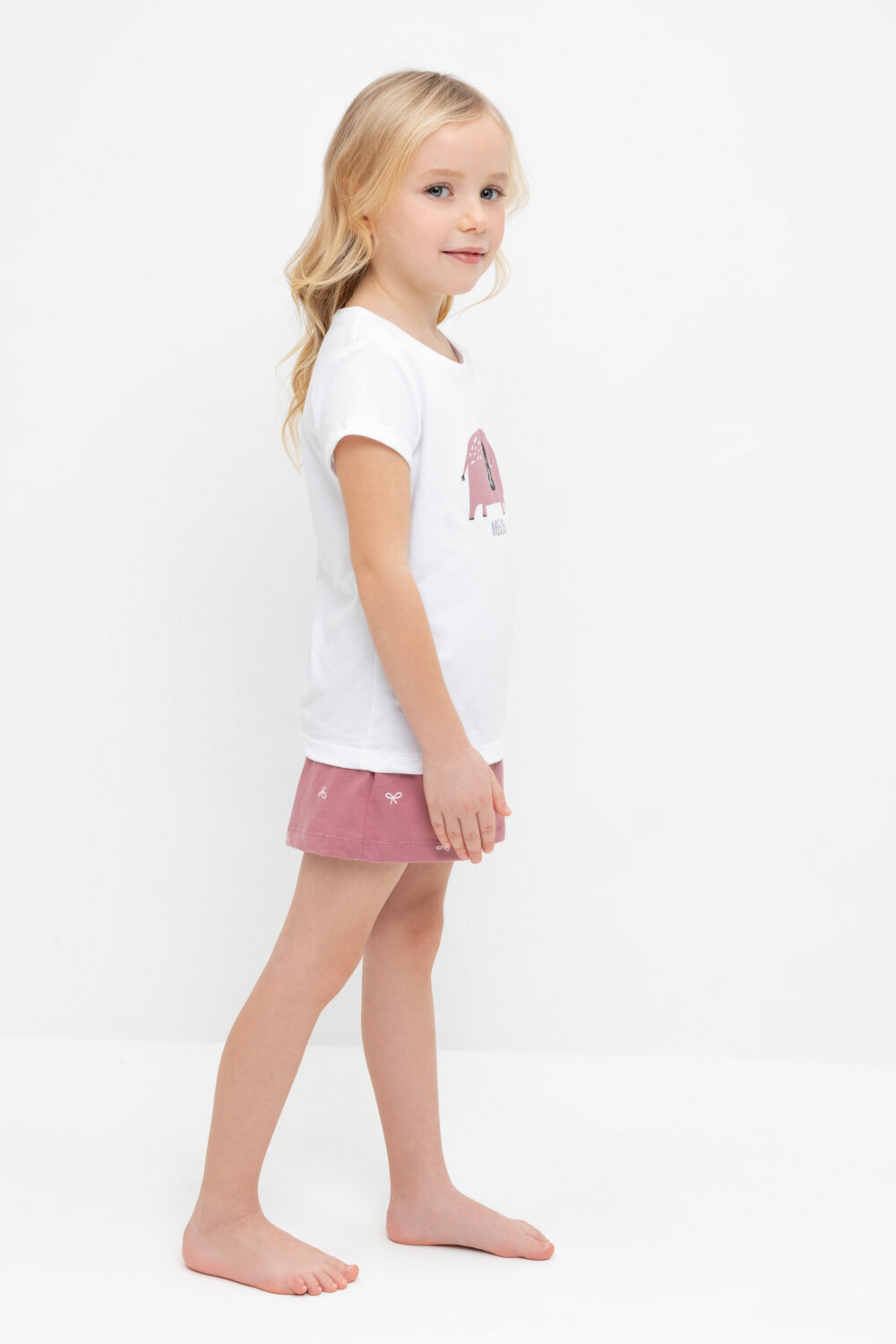 Пижама crockid КП 1648-1/белый,темная пудра,бантики, размер 64/128, белый, розовый
