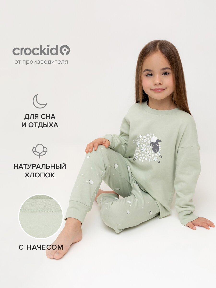Пижама crockid К 1567/морская пена,овечки, размер 72/140, зеленый