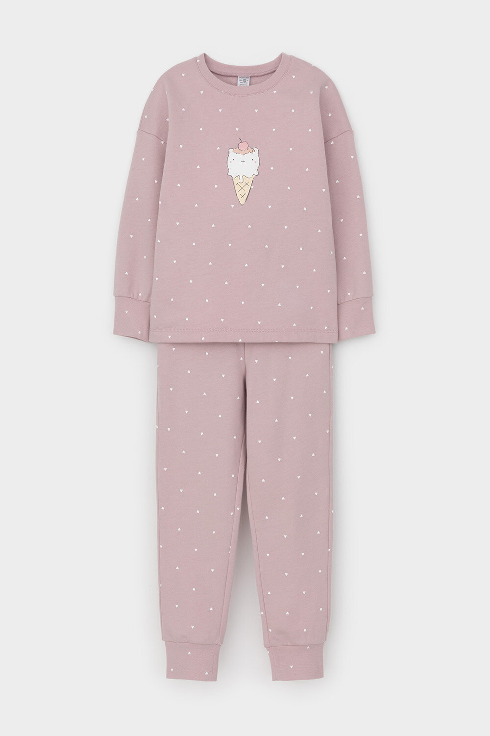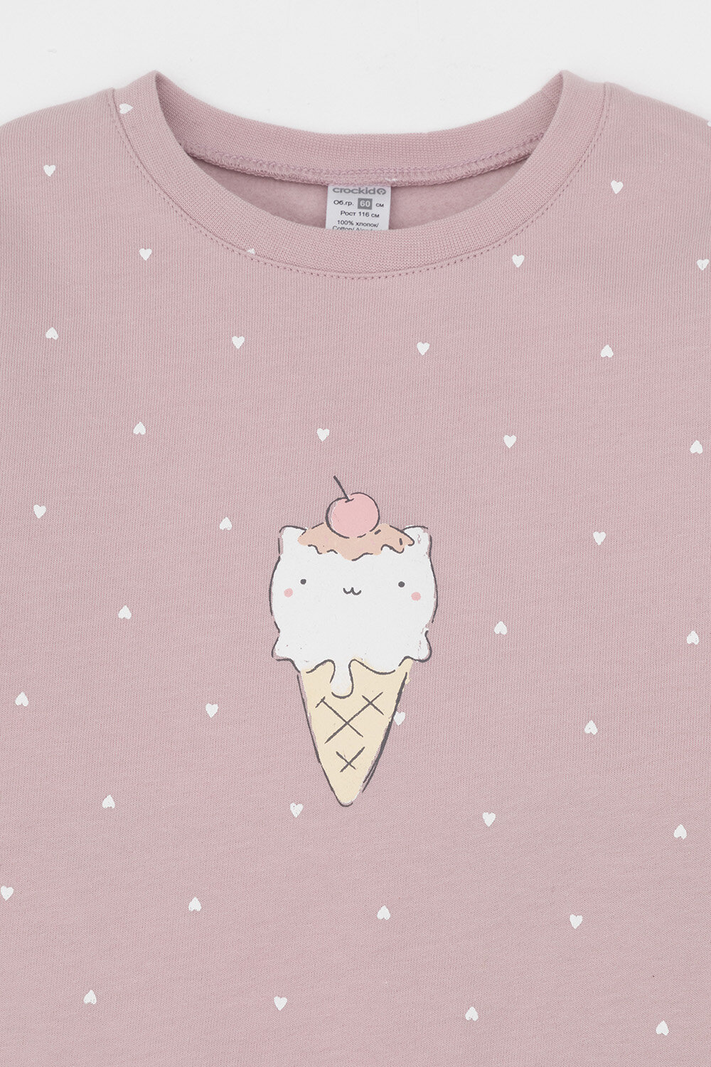 Пижама crockid К 1581/розовый лед,мини сердечки, размер 72/140, розовый