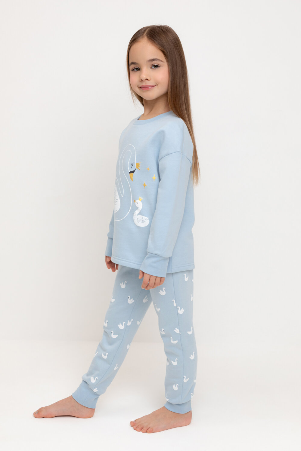 Пижама crockid К 1567/голубое стекло,лебеди, размер 68/134, голубой