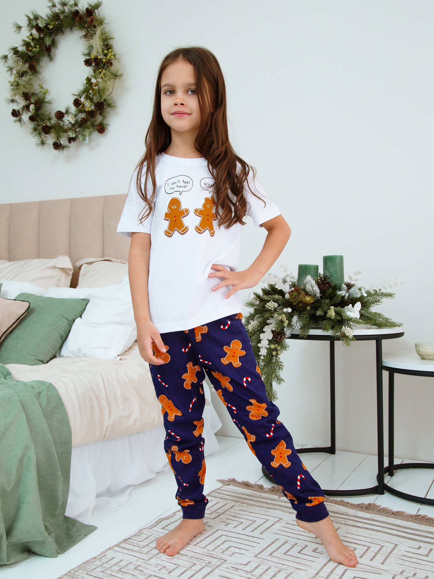 Пижама Ohana kids, размер 122, синий/белый