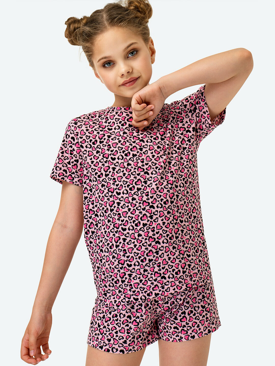 Пижама Happyfox Для девочек, размер 104, сердечки на розовом