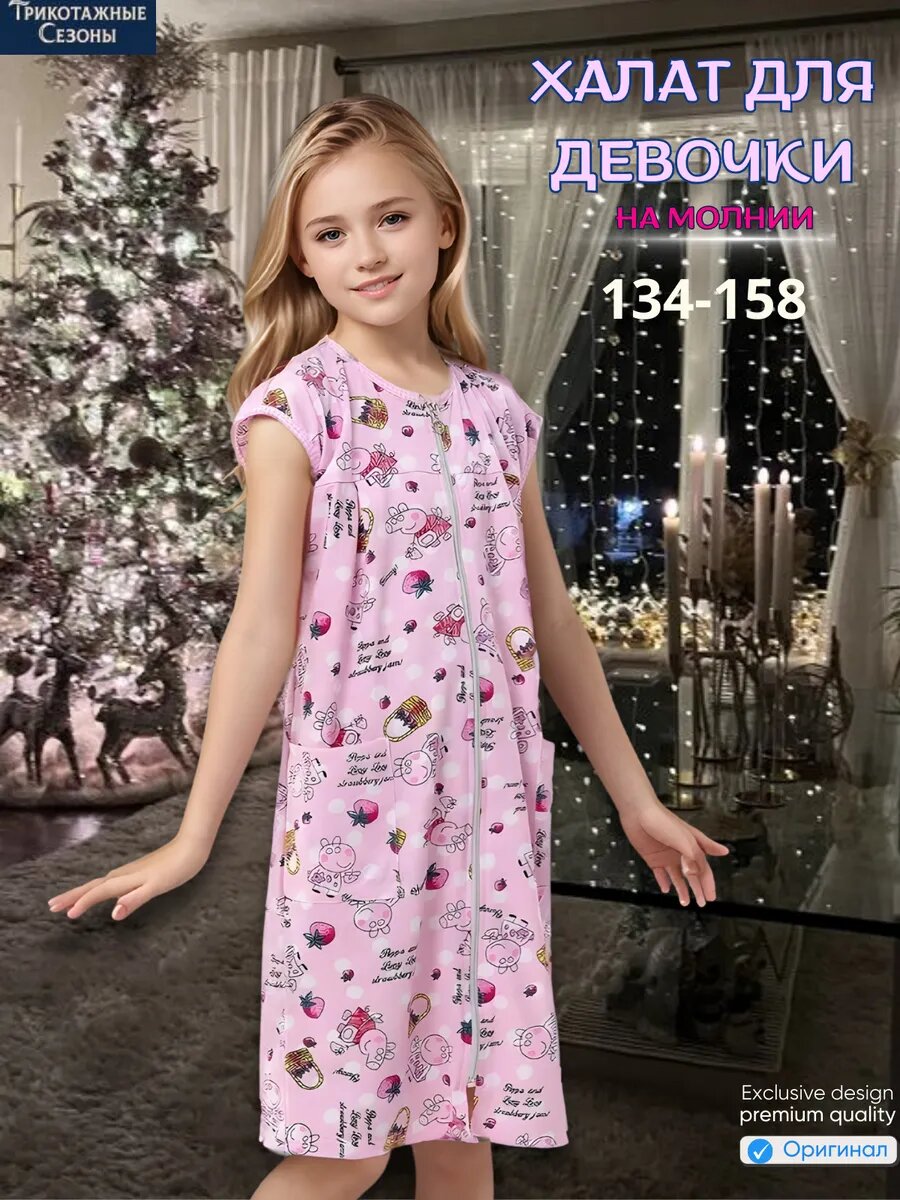 СохранитьХалат Трикотажные сезоны, размер 152, розовый интересное: