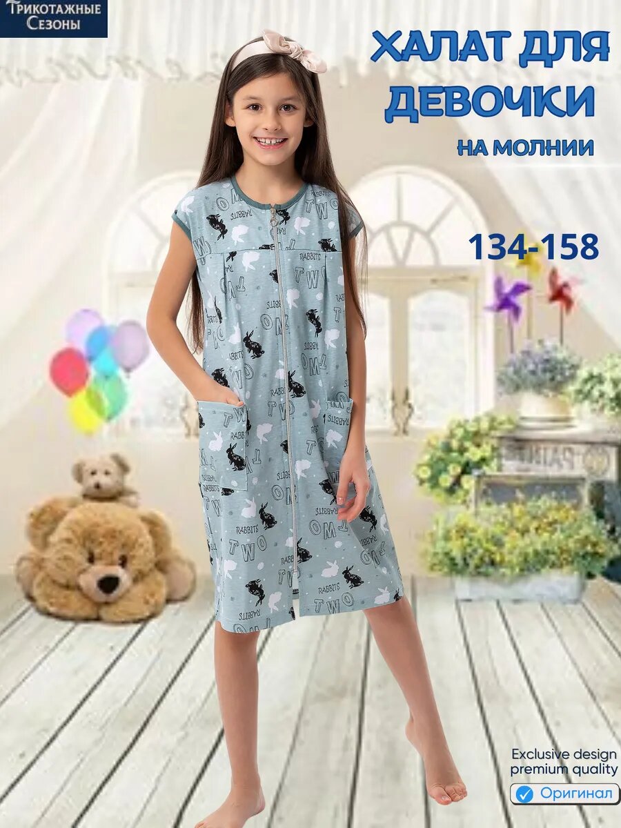 Халат Трикотажные сезоны, размер 140, голубой