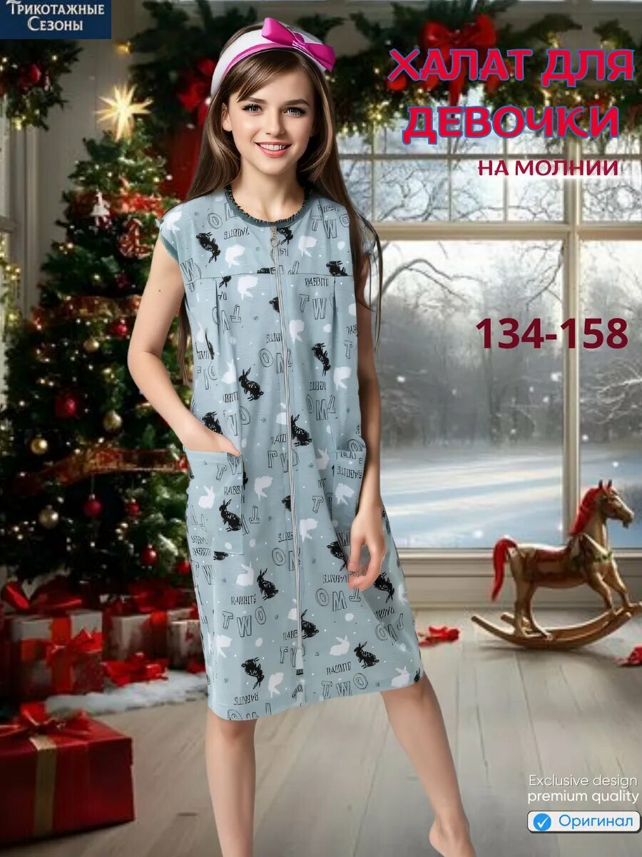 СохранитьХалат Трикотажные сезоны, размер 134, зеленый интересное: