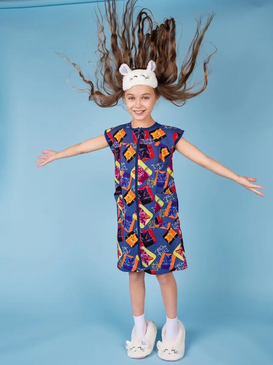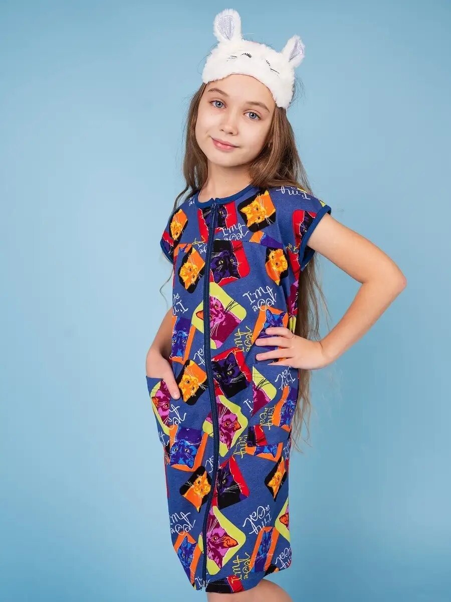 Халат Трикотажные сезоны, размер 140, голубой