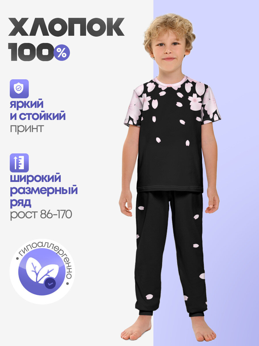 Пижама Lacotton.ru Цветы, размер 134, мультиколор