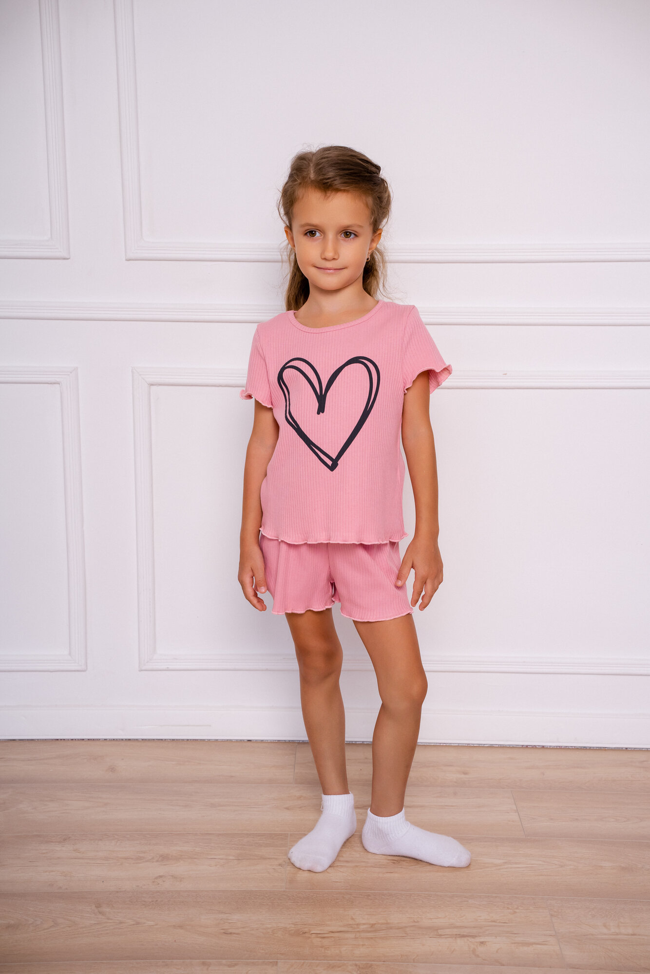 Пижама Happyfox Для девочек, размер 104, сердечки на розовом