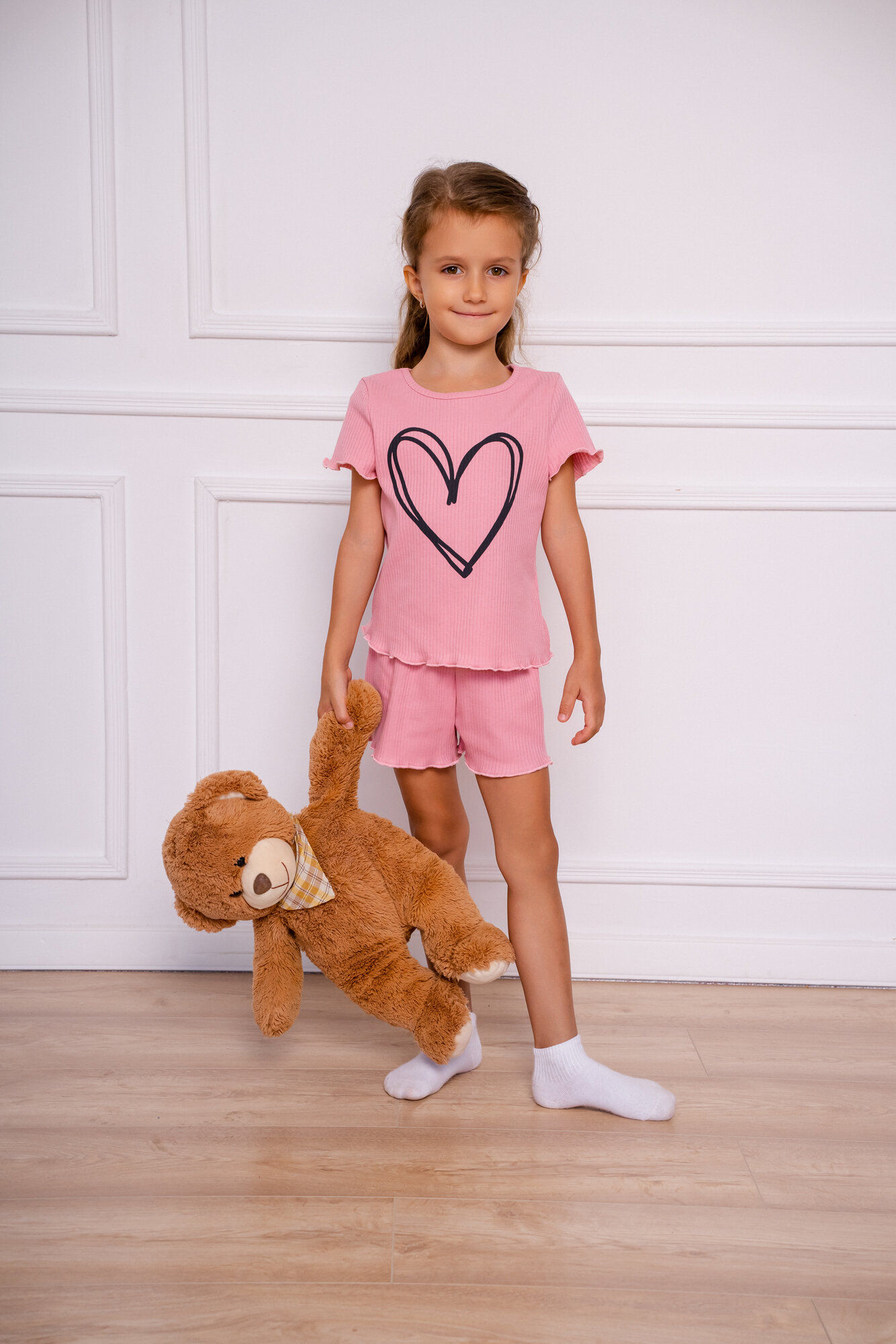 Пижама Happyfox Для девочек, размер 104, сердечки на розовом