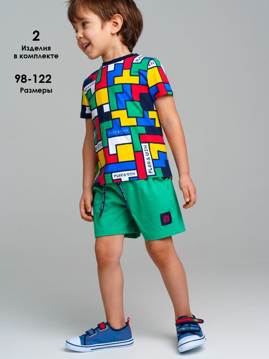 Купить Комплект одежды playToday Весна-лето 2025, размер 110, синий, зеленый, желтый