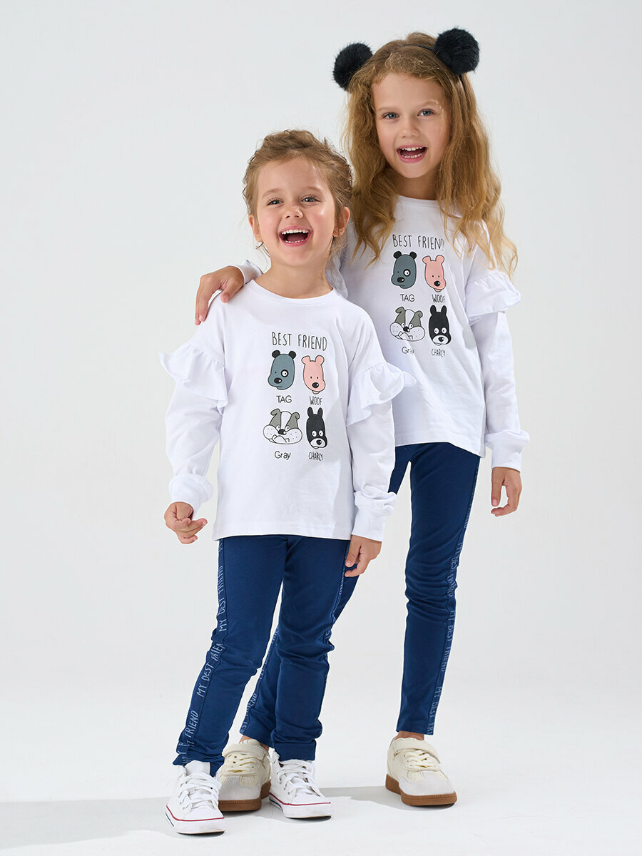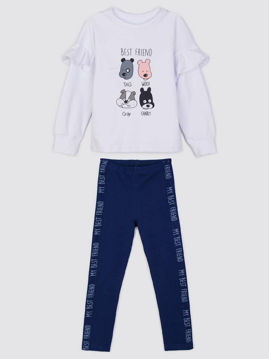 Комплект одежды КотМарКот, размер 122, белый/темно-синий