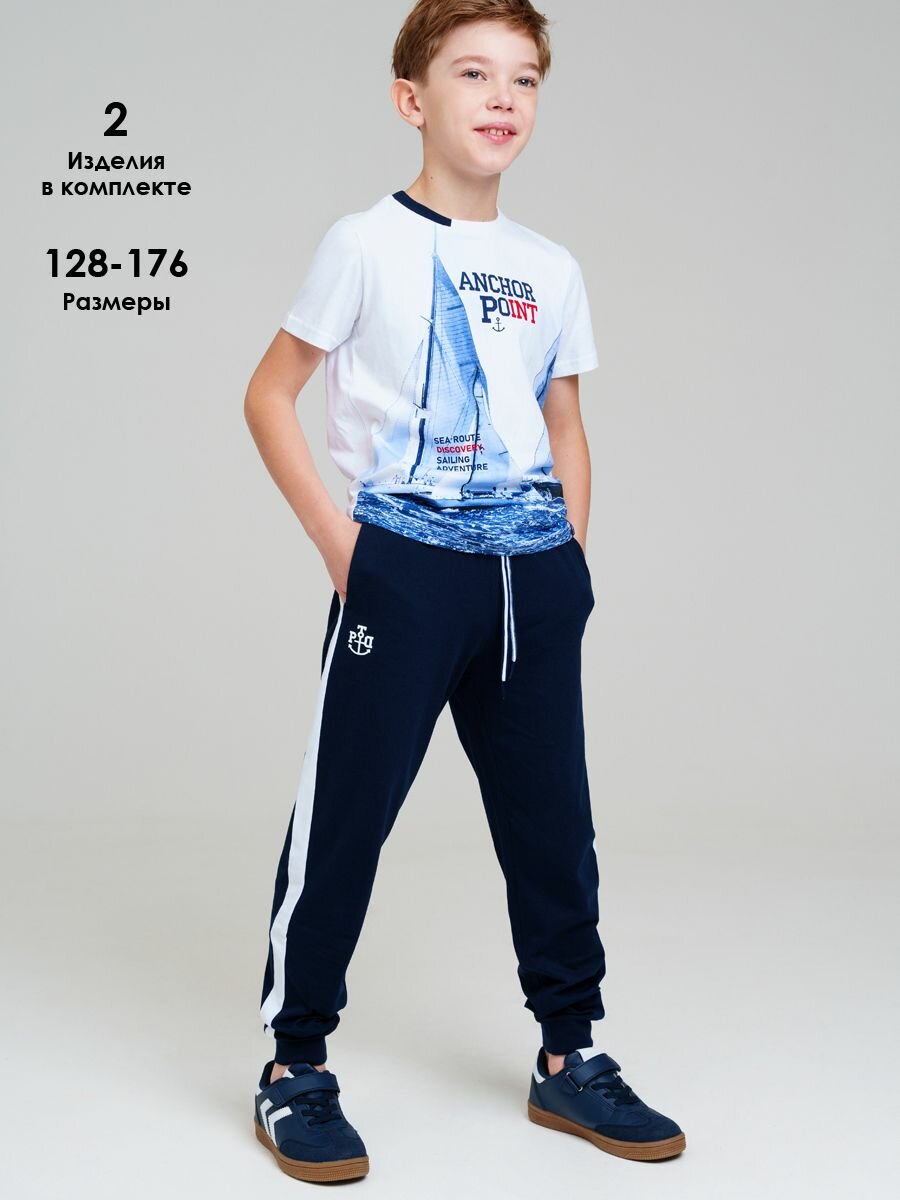 Купить Комплект одежды playToday Весна-лето 2025, размер 164, белый/темно-синий/голубой