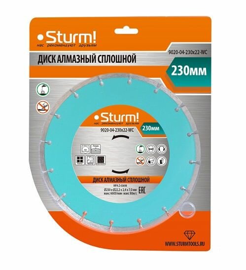 Диск алмазный STURM 9020-04-230х22-WC, влажная резка, непрерывный 230мм /14954/