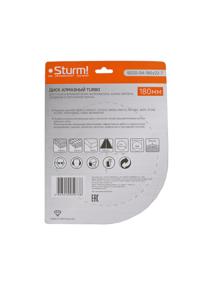 СохранитьДиск алмазный Sturm! 9020-04-180x22-T интересное: