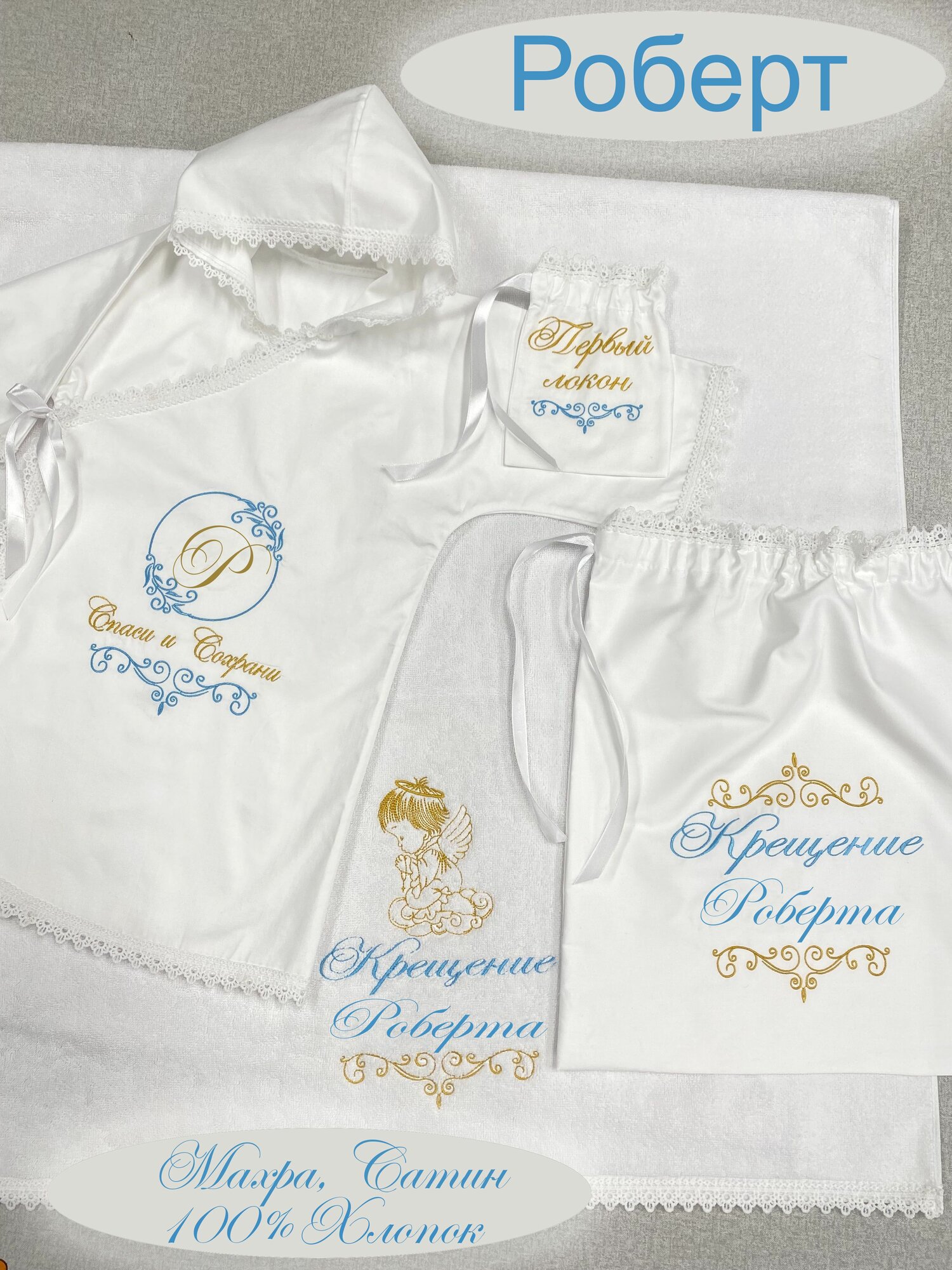 Комплект крестильный именной набор для крещения, размер 62, белый