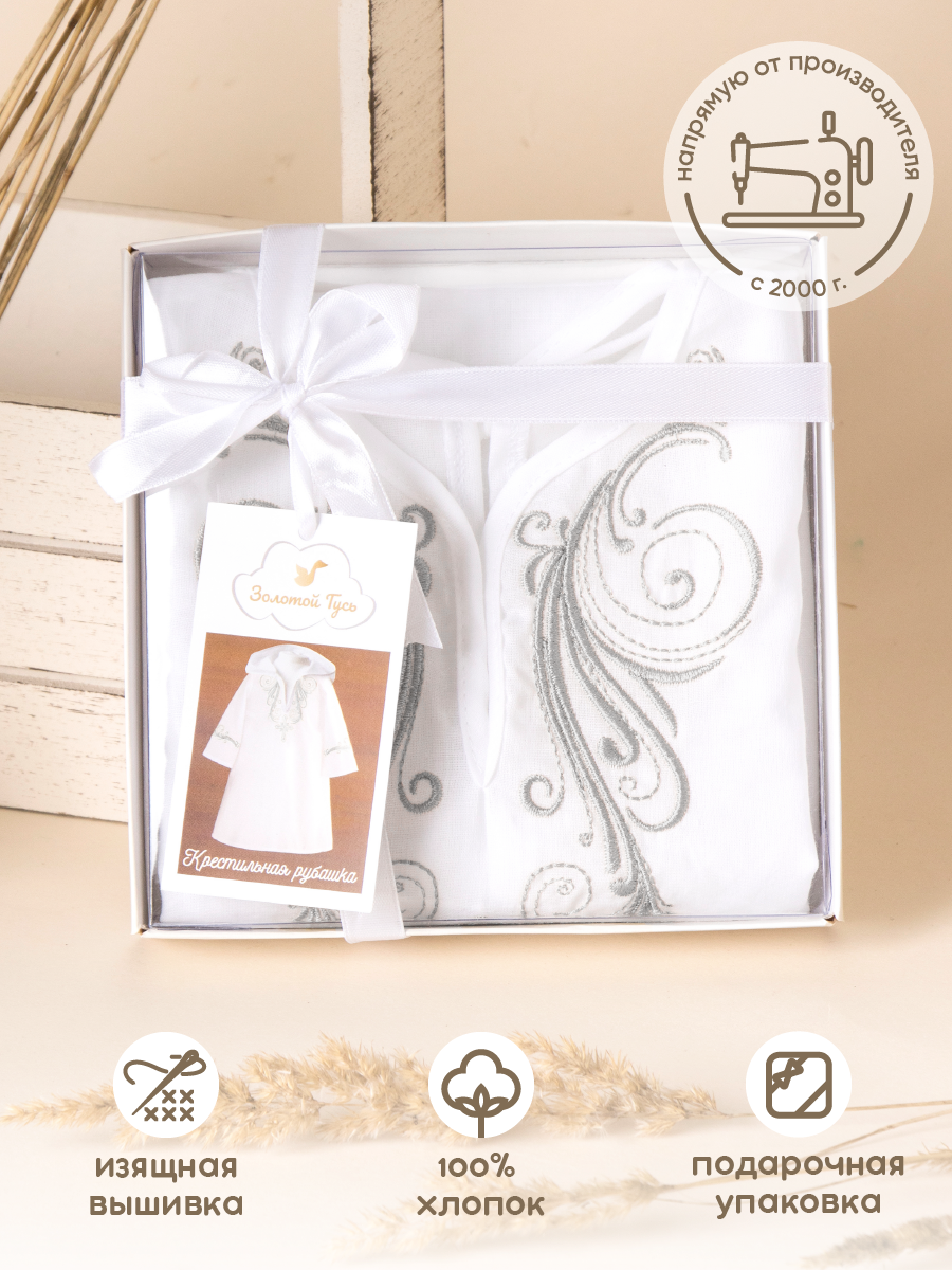 Купить Рубашка крестильная Золотой Гусь, размер 86, белый