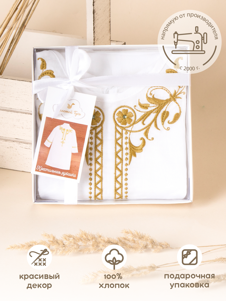 Рубашка крестильная Золотой Гусь, размер 80, белый/золото