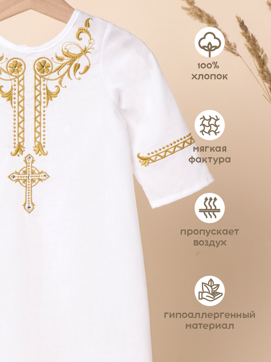 Рубашка крестильная Золотой Гусь, размер 80, белый/золотистый
