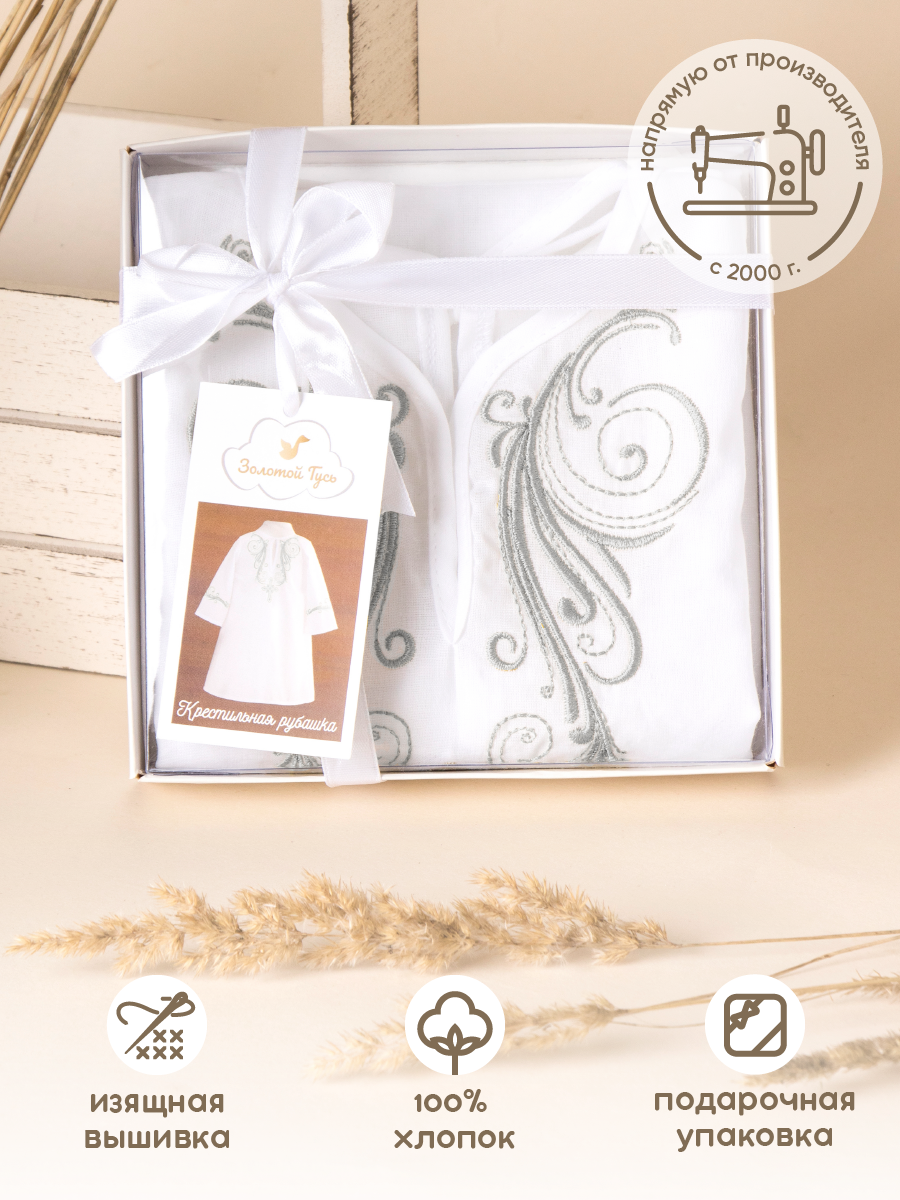 Купить Рубашка крестильная Золотой Гусь, размер 62-68, белый