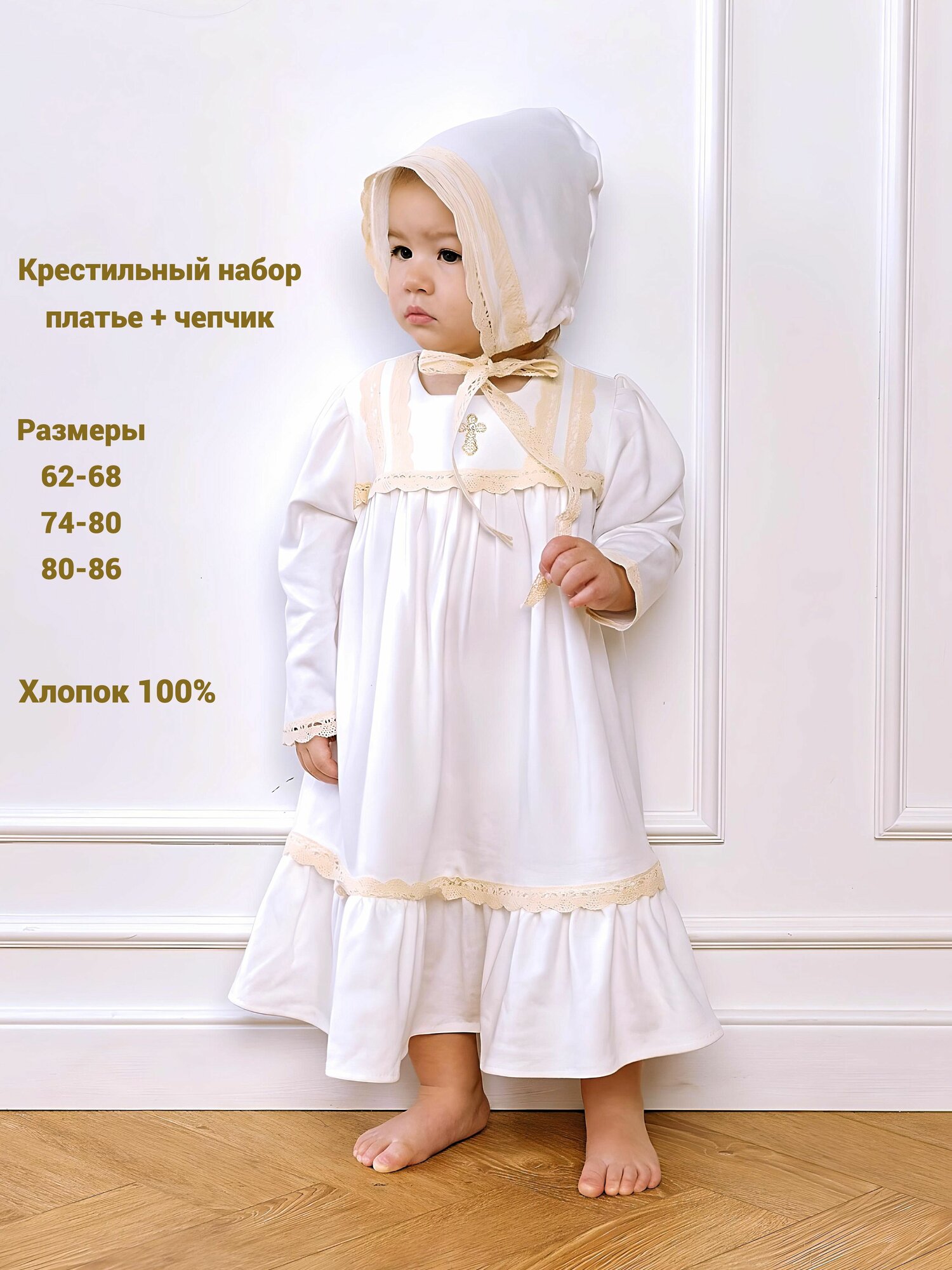 Комплект крестильный Крестильное, размер рост 74-80 (6-12 месяцев), белый