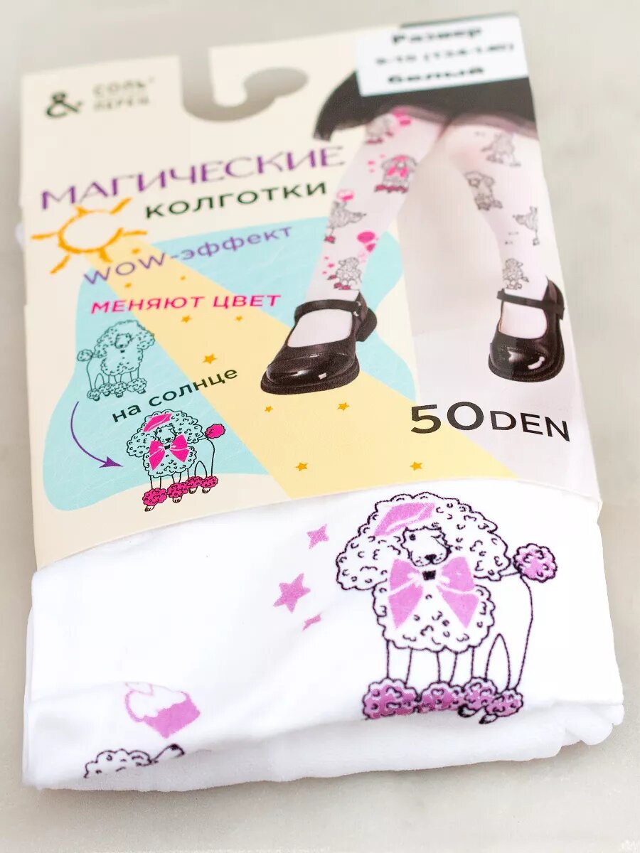 Колготки Соль&Перец Магические капроновые колготки с проявляющимся рисунком Собачка, размер 98/104, белый/розовый интересное: