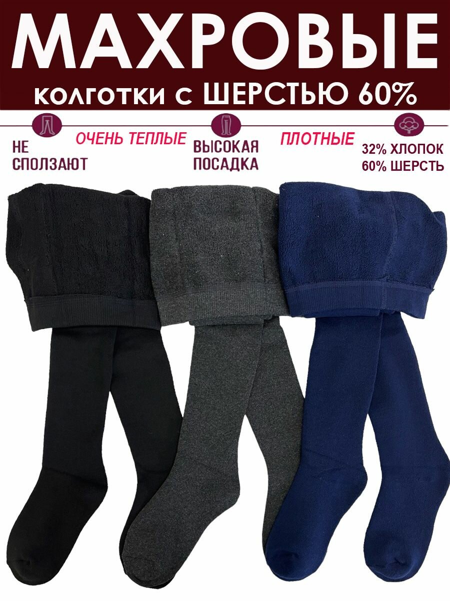 Купить Колготки ШУГУАН махровые с шерстью, 300 den, 3 шт., размер 152-164, синий, черный, серый