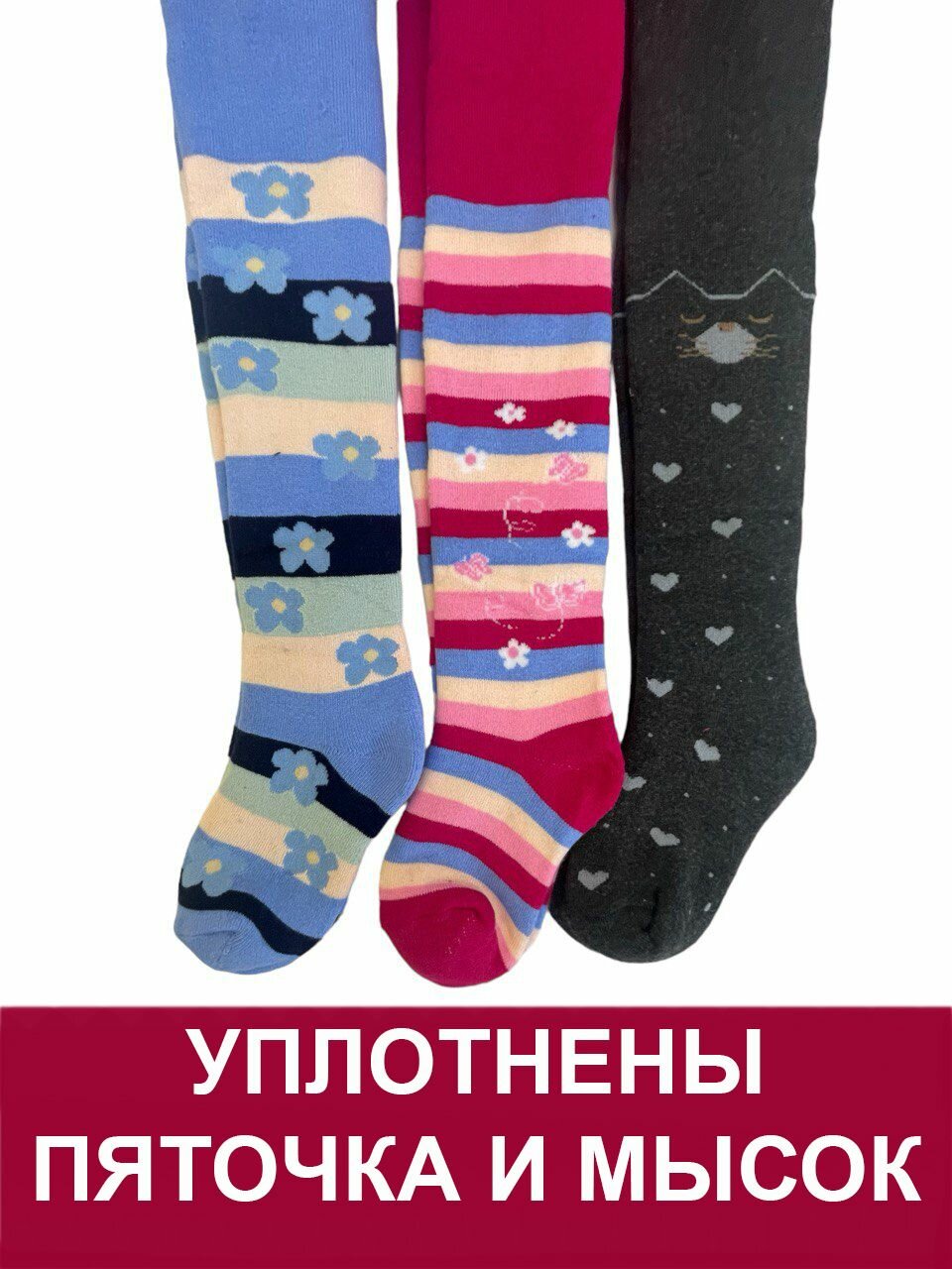 Колготки ШУГУАН махровые с шерстью, 300 den, 3 шт., размер 92-98, серый, голубой, розовый