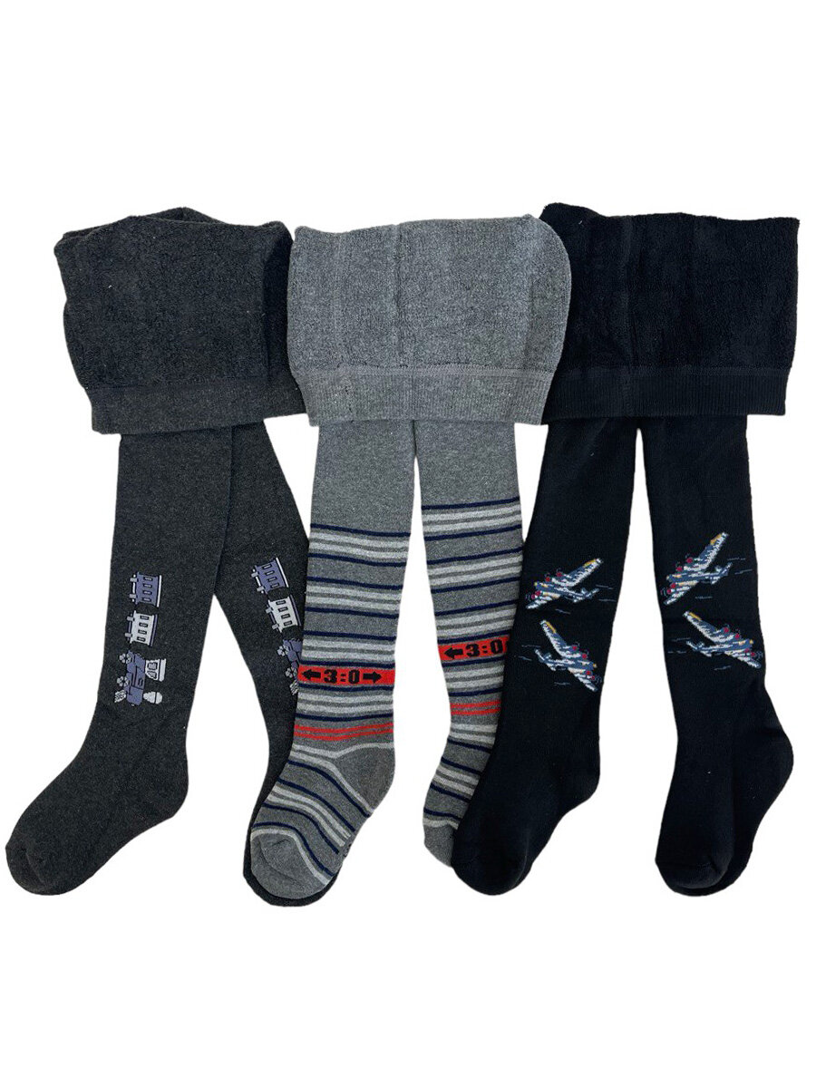 Колготки ШУГУАН махровые с шерстью, 300 den, размер 86-92, синий, серый
