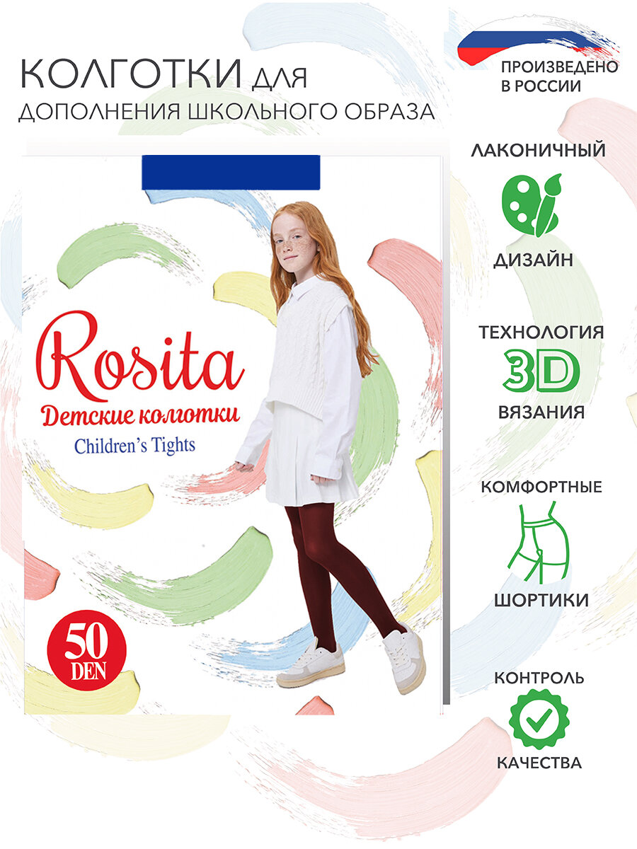 Колготки Rosita Однотонные 50, 50 den, размер 6-8, синий интересное: