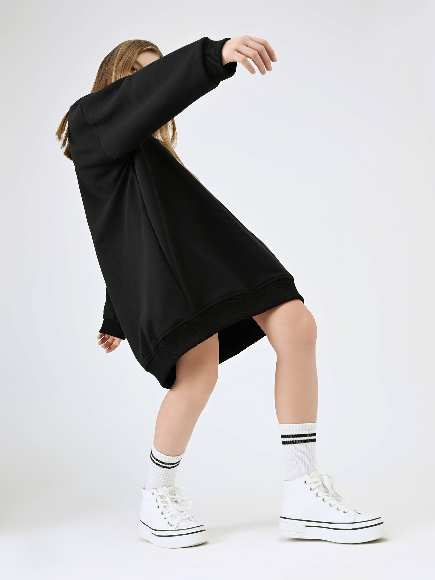Платье - толстовка для девочки футер Апрель 1ДПД4520335/1358/2631/*/3409/*/*/* голубой 76-146