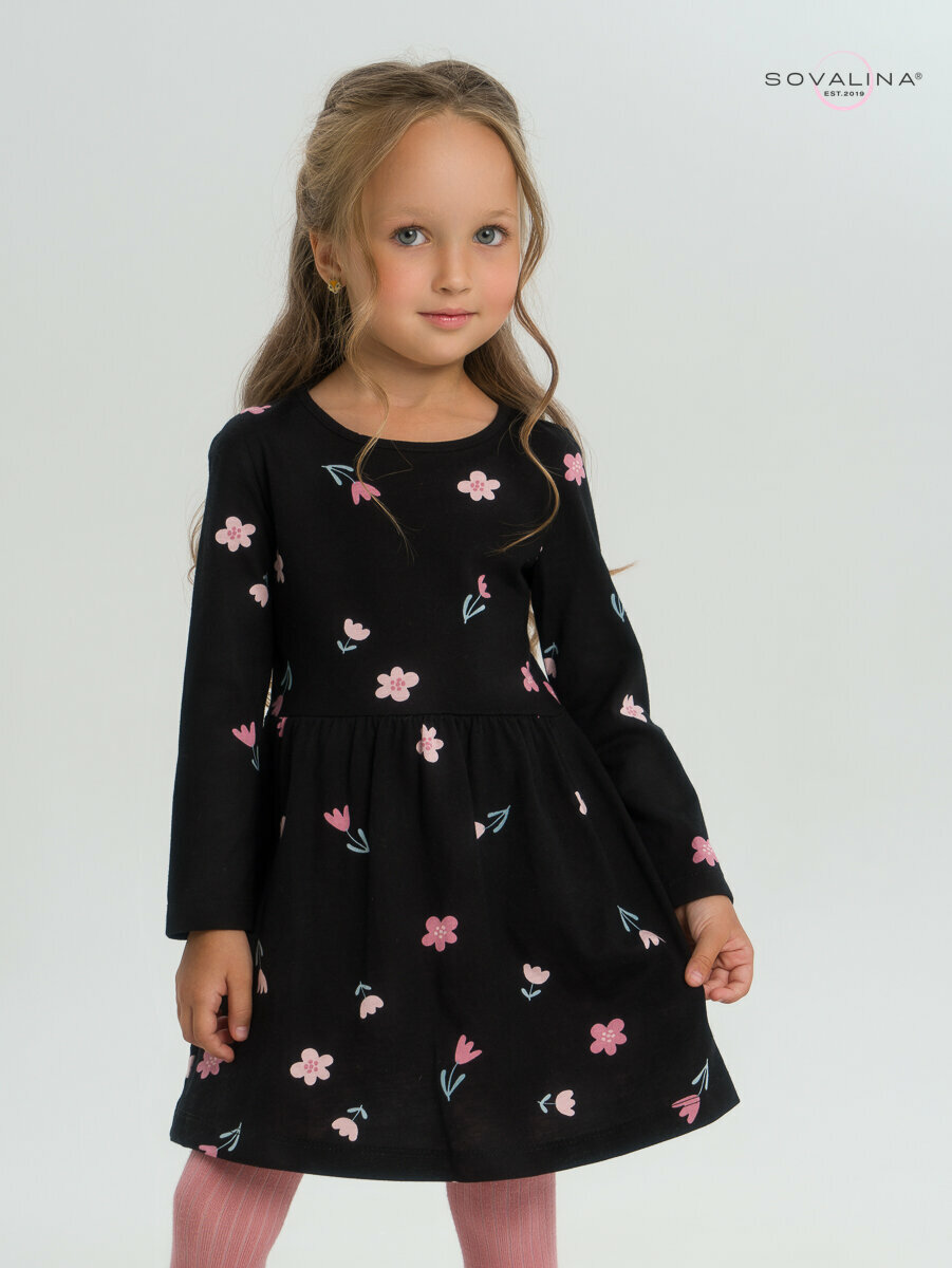 Платье SOVALINA, размер 110, черный, розовый