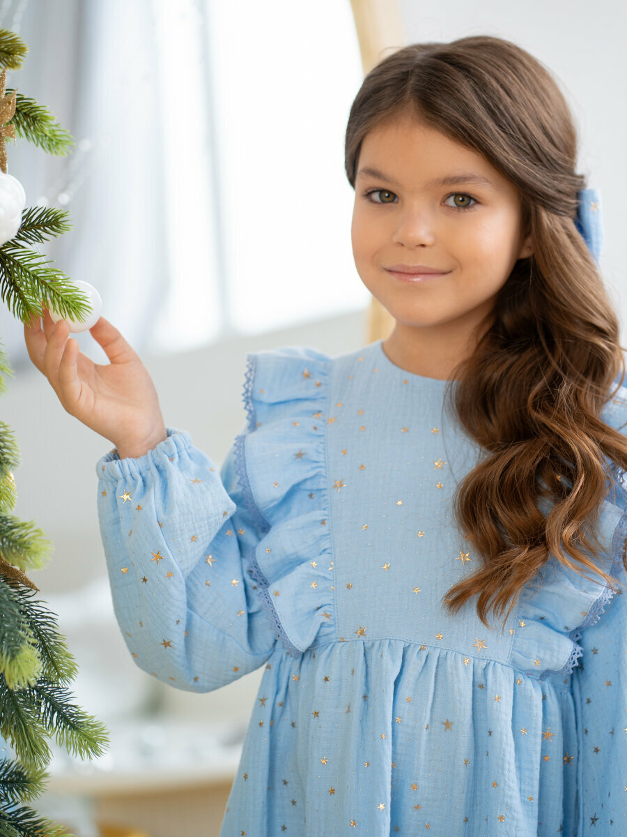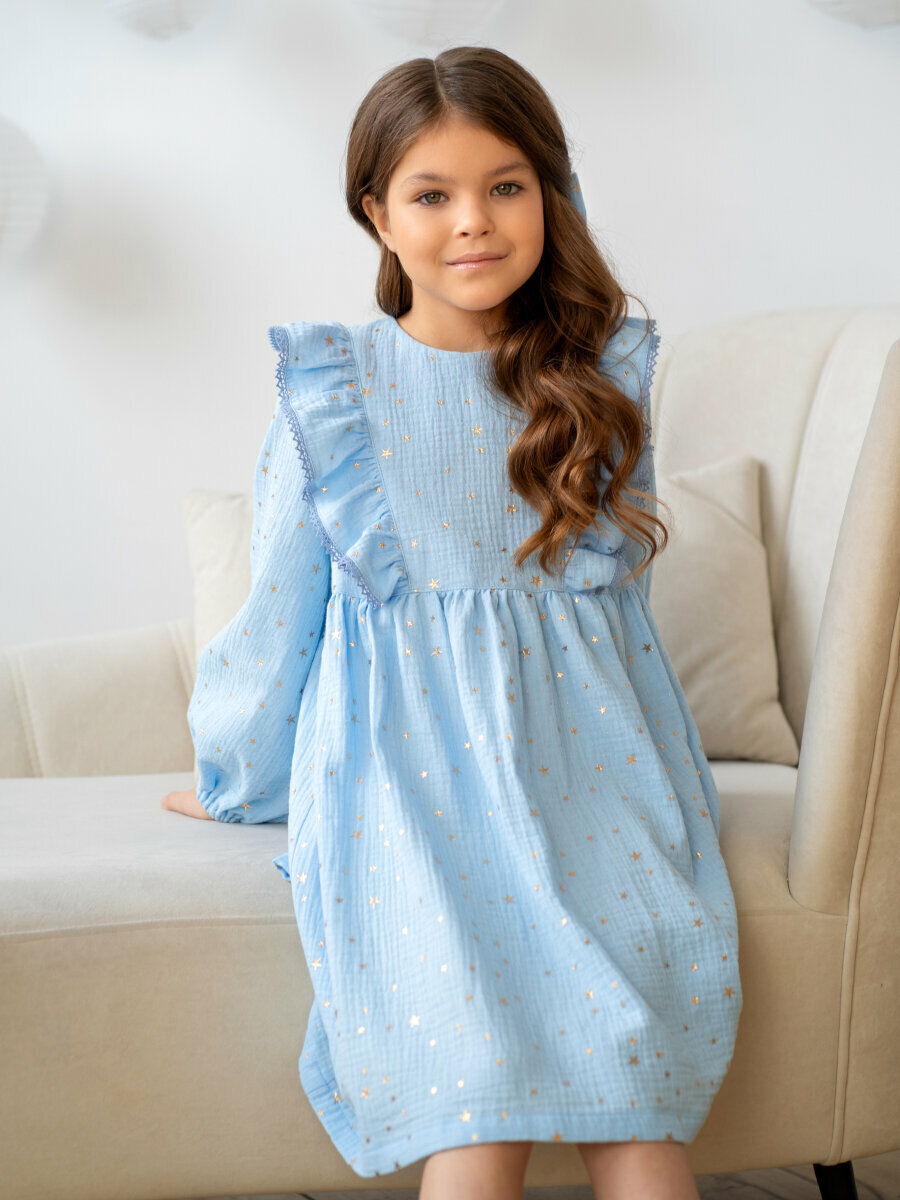 Платье Bamsie kids Базовая коллекция, размер 116, голубой интересное: