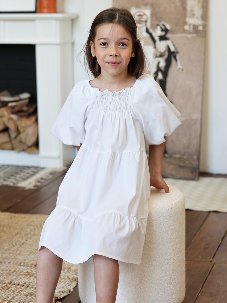 Платье Бушон Хлопок, размер 122-128, белый