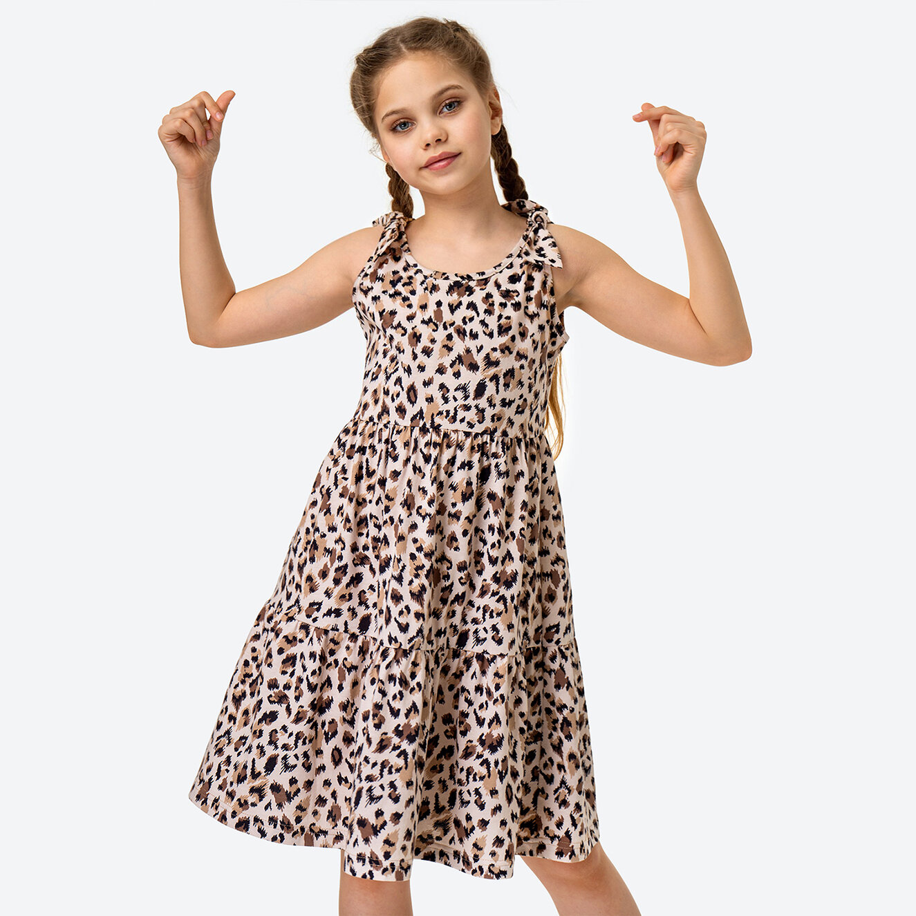 Платье Happyfox для девочек, размер 140, бежевый