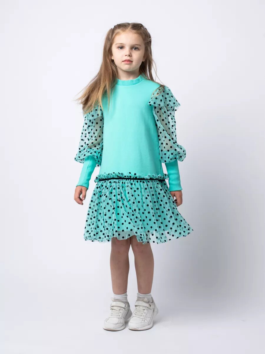 Платье - толстовка для девочки футер Апрель 1ДПД4520335/1358/2631/*/3409/*/*/* голубой 76-146