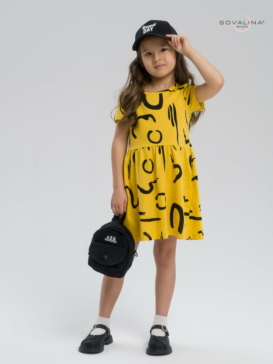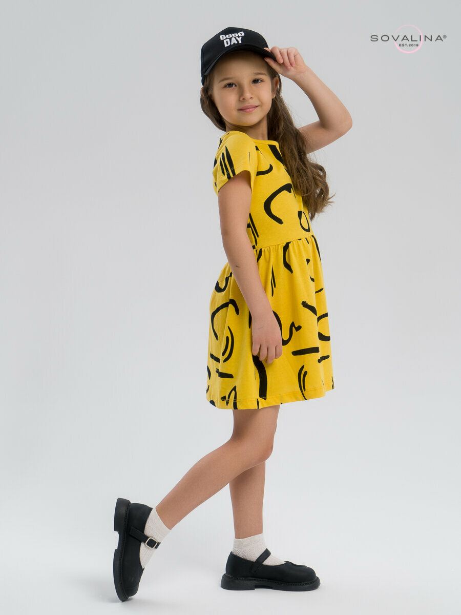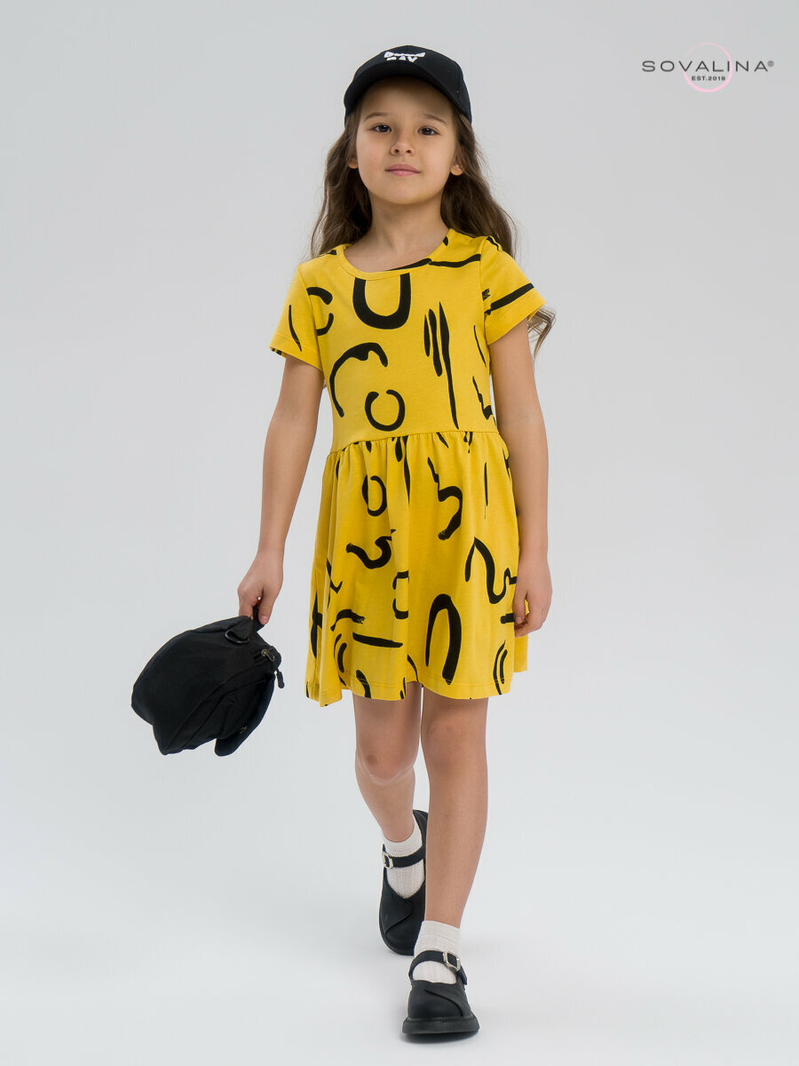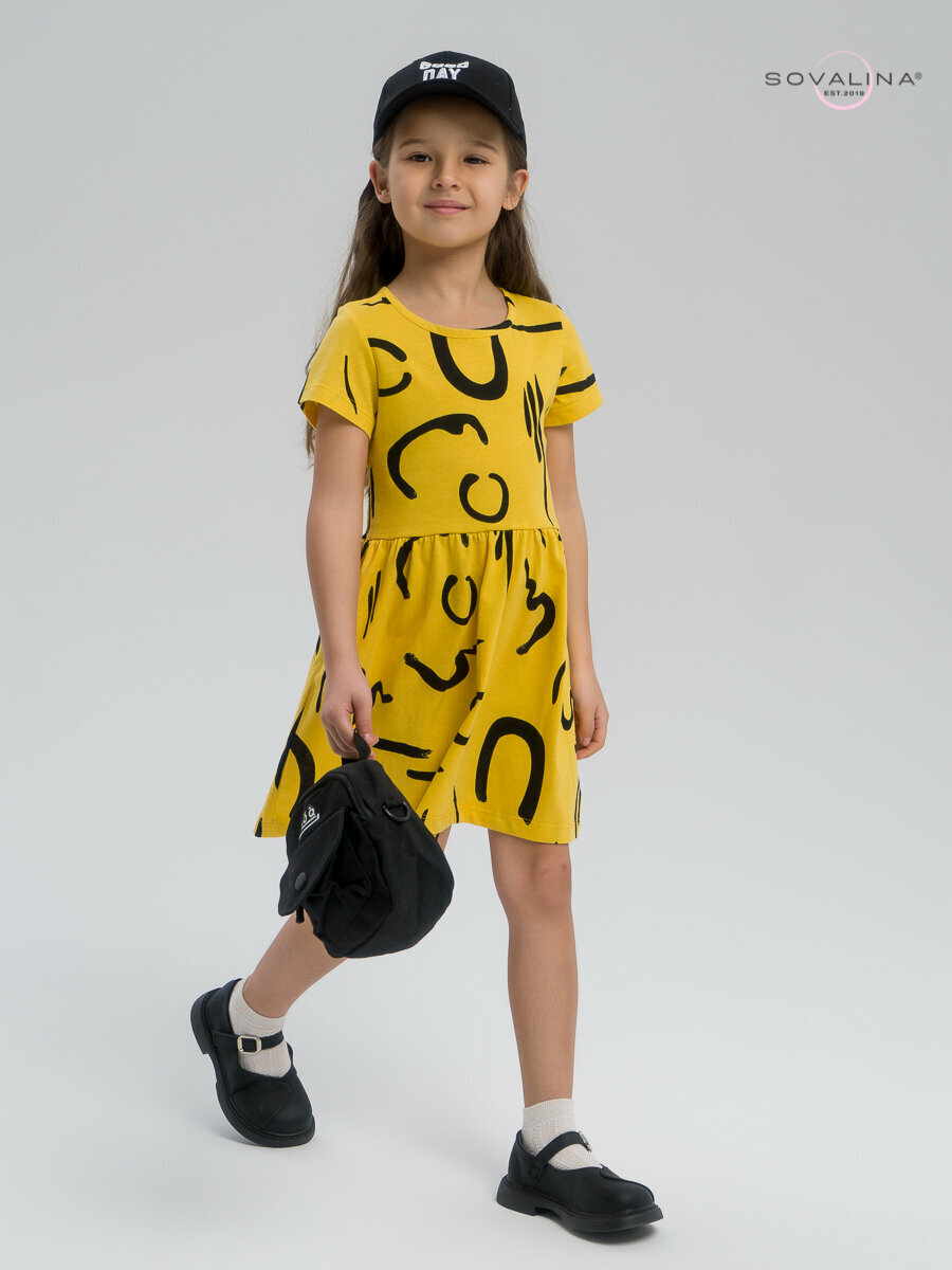 Купить Платье SOVALINA, размер 98, желтая абстракция