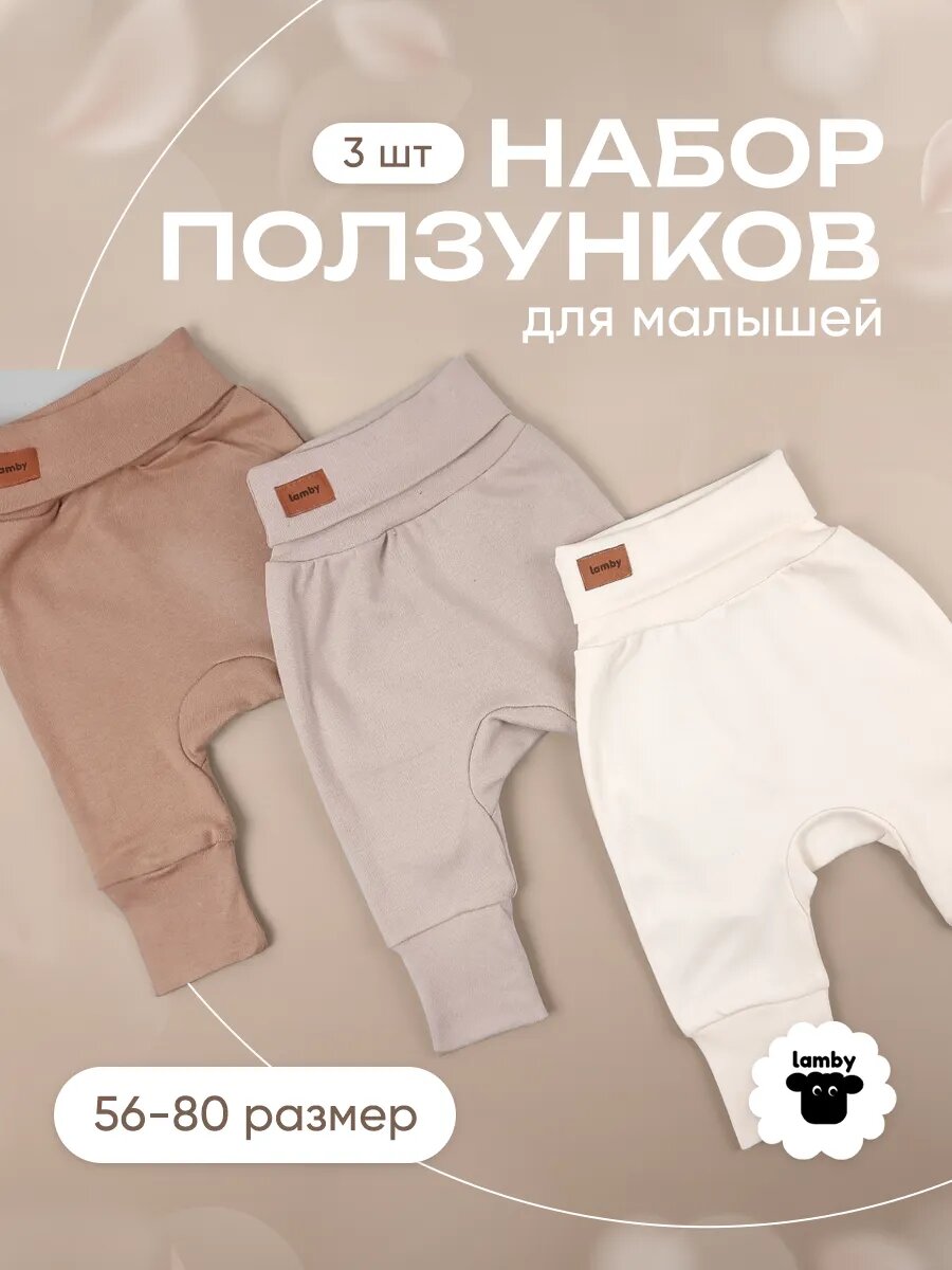 Купить Ползунки lamby повседневный, комплект из 3 шт., размер 68, светло-бежевый
