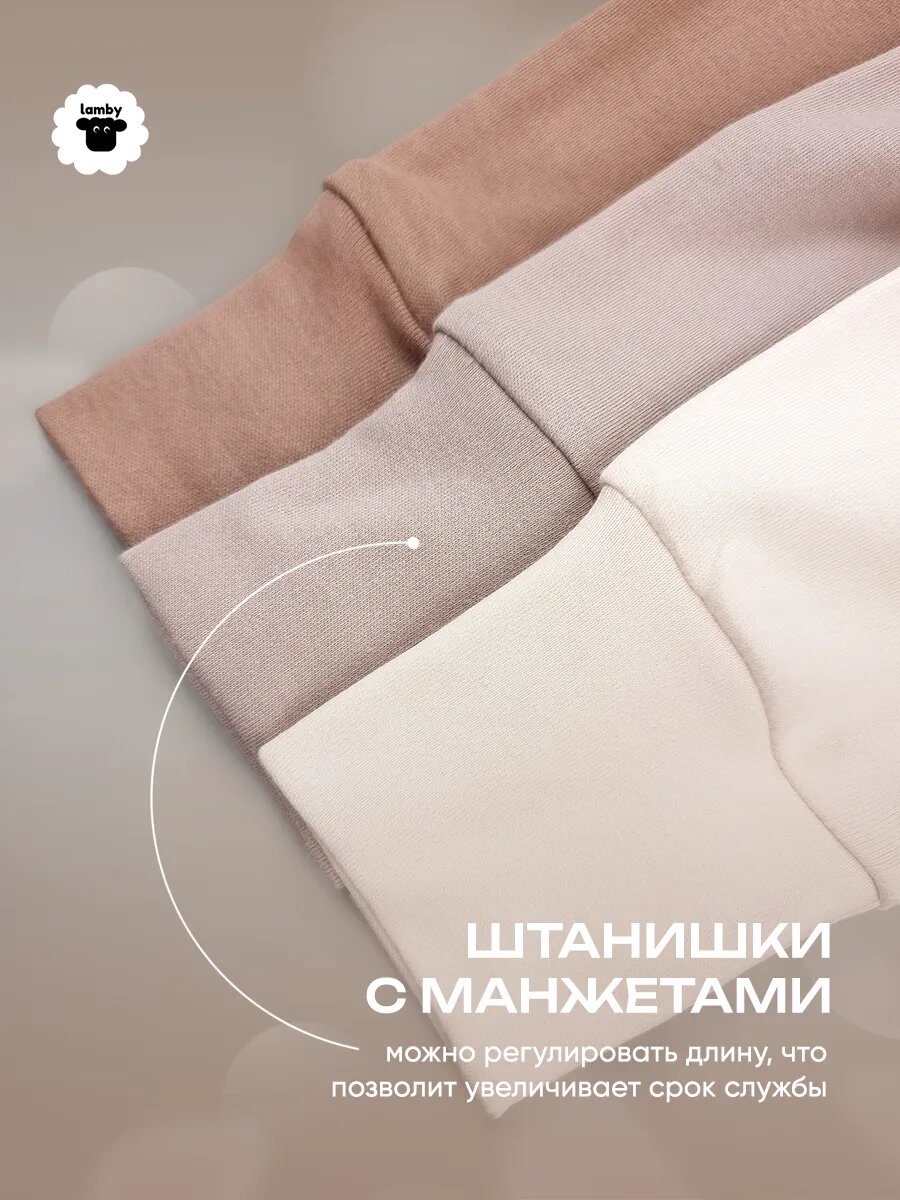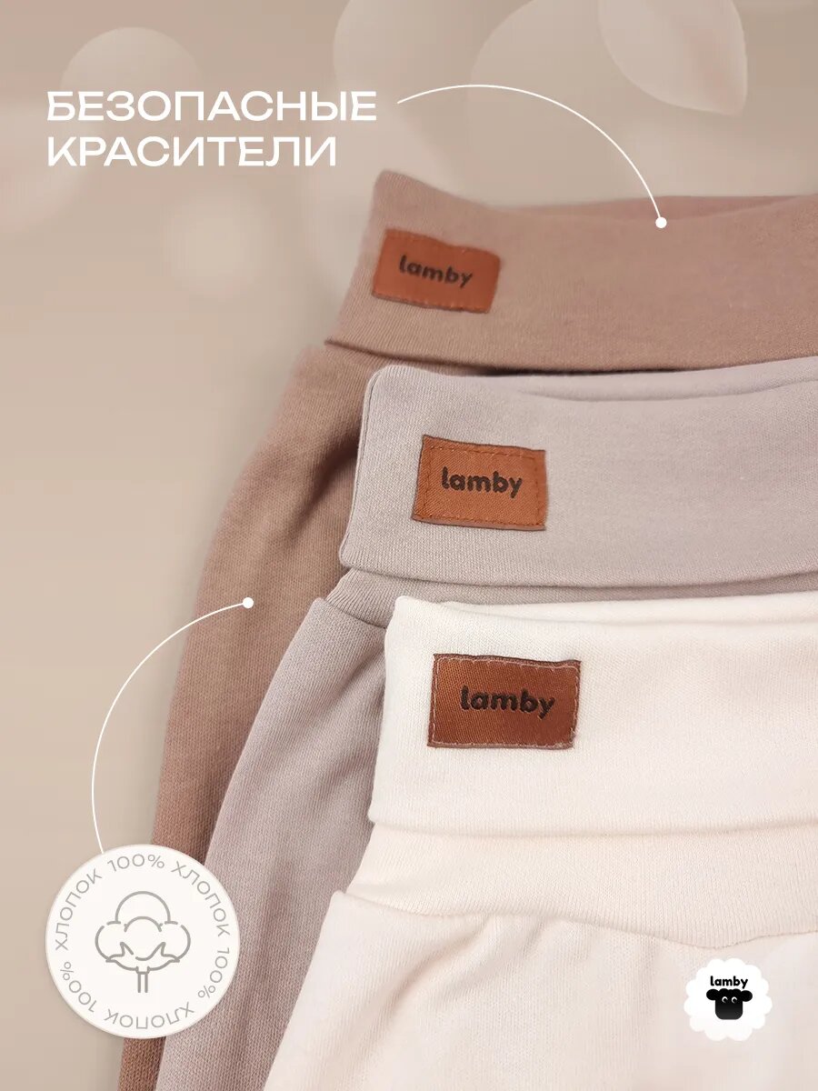 Ползунки lamby повседневный, комплект из 3 шт., размер 68, светло-бежевый интересное: