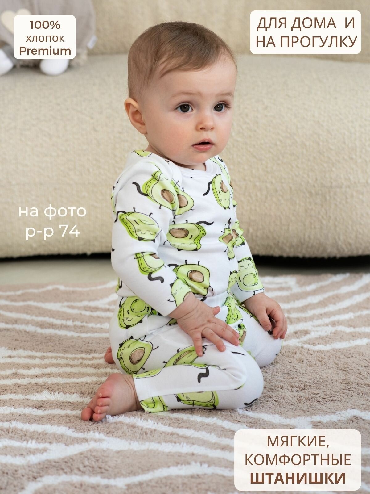 Ползунки Bebo, размер 86, белый, коричневый, зеленый