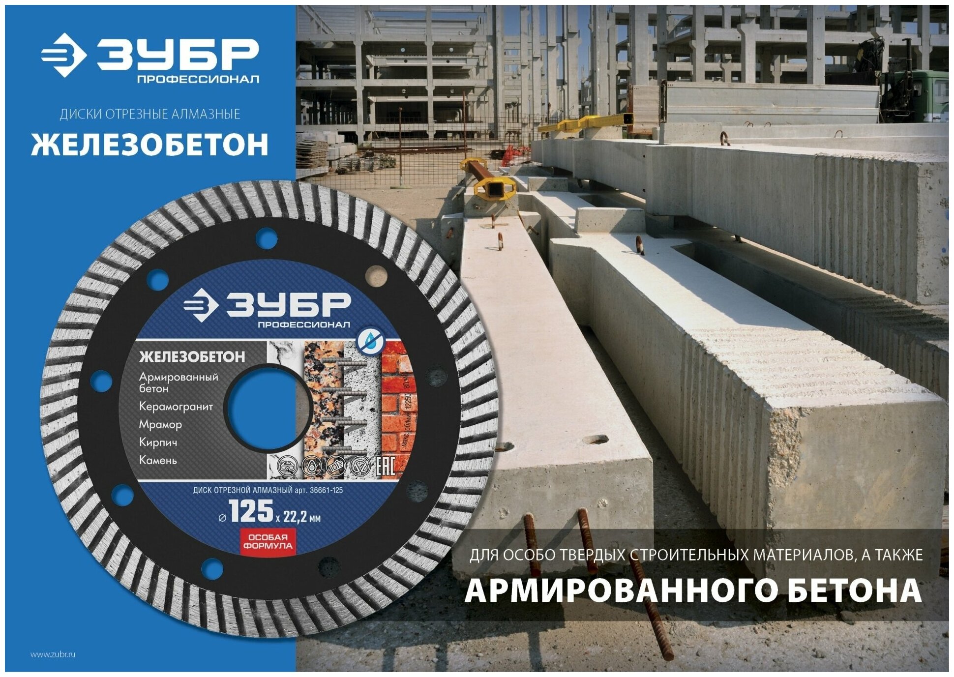 ЗУБР железобетон 115 мм (22.2 мм, 10х2.4 мм), алмазный диск, профессионал (36661-115)