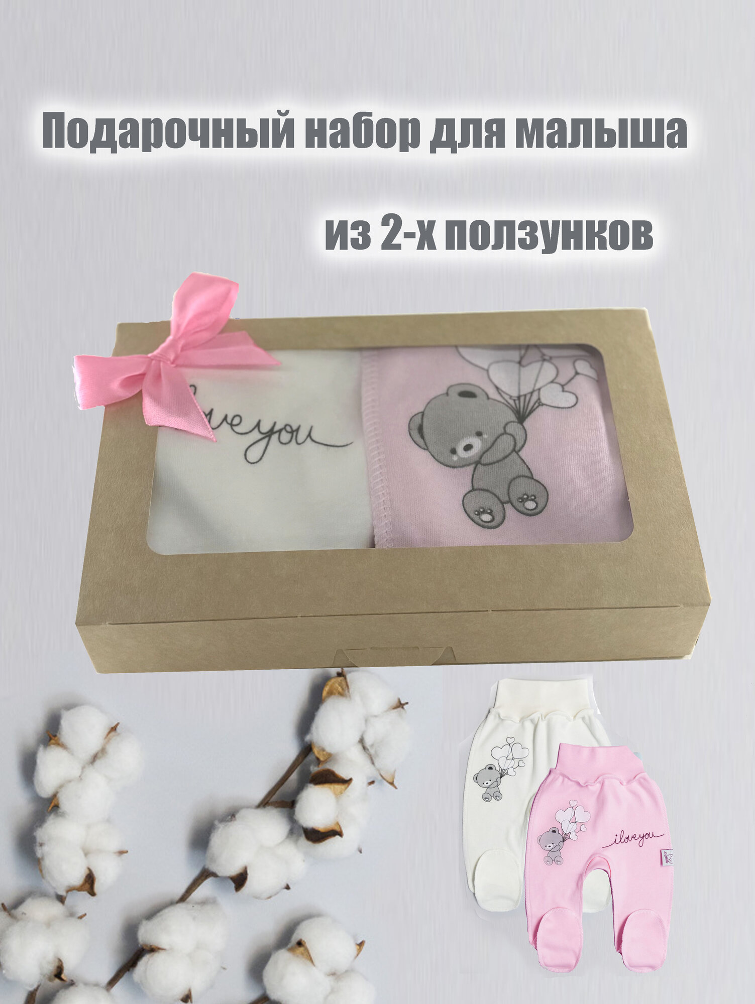 Ползунки Amelli С мишками, комплект из 2 шт., размер 56,62, бежевый, розовый интересное: