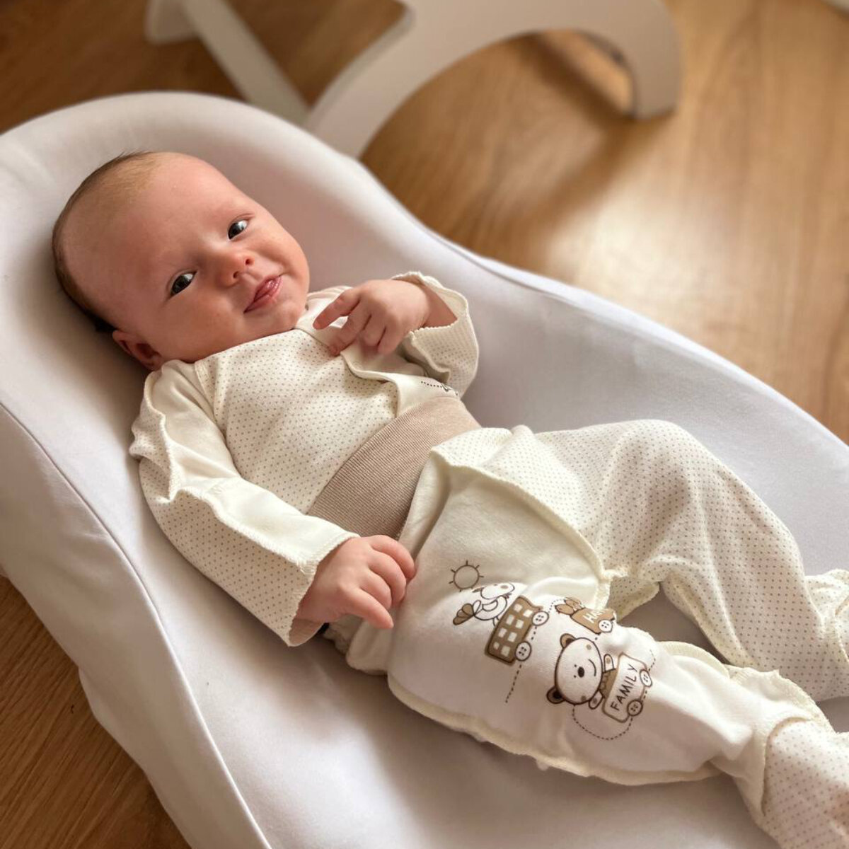 Распашонка ALARYSPEOPLE кофточка для малышей "Горошек", размер 56, молочный интересное: