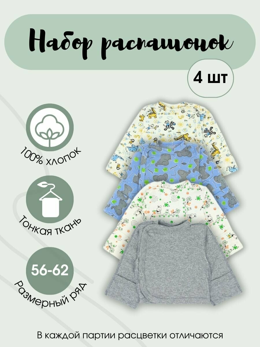Распашонка MilleFaMille, комплект из 4 шт., размер 62-40, голубой интересное: