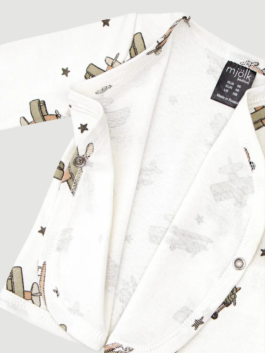 Распашонка Mjolk, размер 68, белый, коричневый, зеленый
