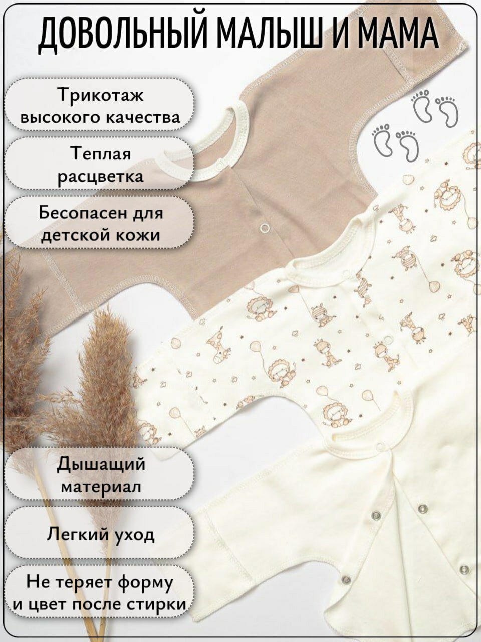 Распашонка , комплект из 3 шт., размер 56-62, бежевый интересное: