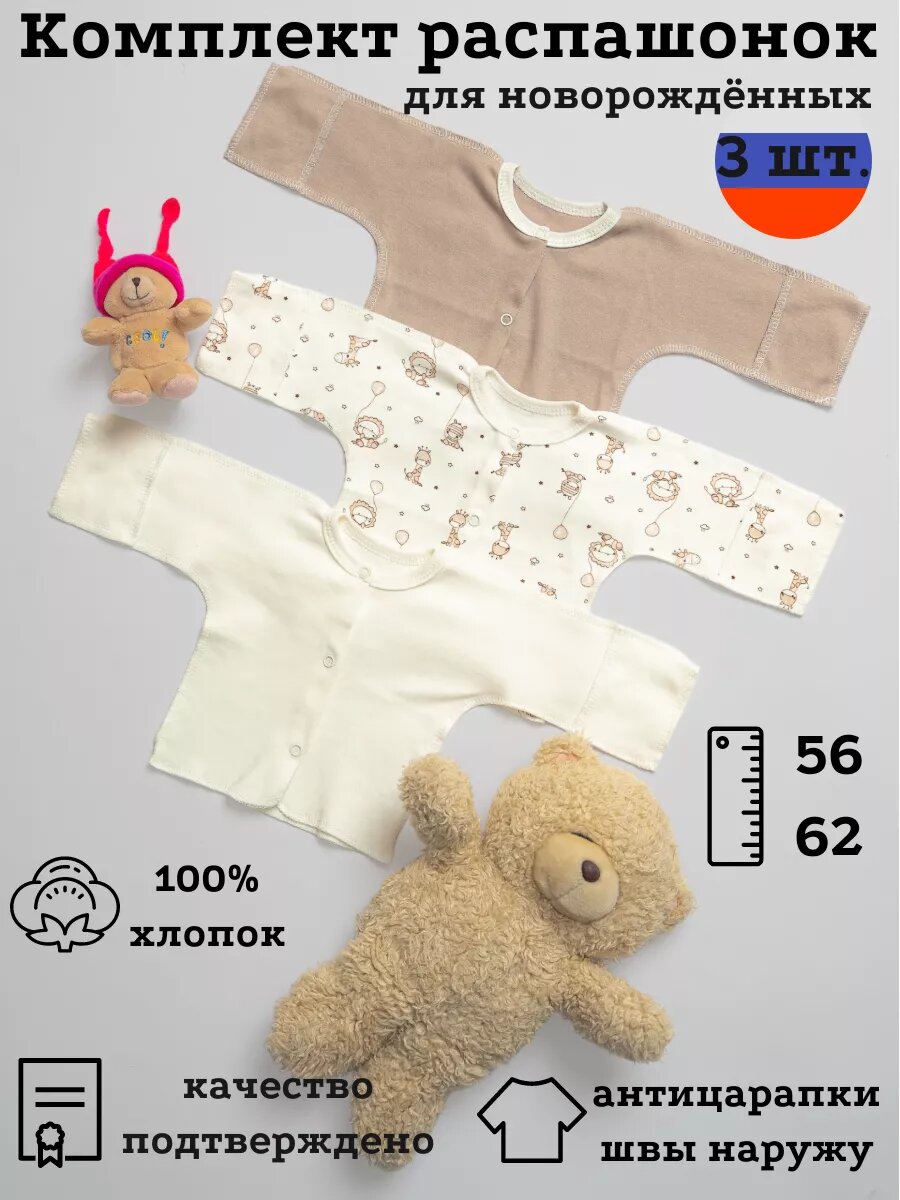 Купить Распашонка , комплект из 3 шт., размер 56-62, бежевый
